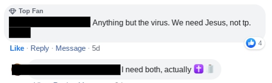๐Ÿ˜ทChristians are not hoarders. Christians are sharers. It’s one thing to lay in a reasonable supply. It’s a whole ‘nother animal to buy into the mindset that purchasing huge amounts of supplies will somehow magically ward off harm. It won’t. That’s superstition. It is failing to trust God to provide for you. Do business with God and discern whether or not you’ve been hoarding. If you have, repent, and make like Zacchaeus and give it away to people who need it.ย