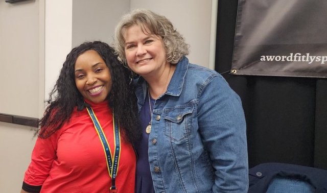 It’s always fun to get pictures with friends and followers! All of the speakers had “meet and greet” lines after our sessions and Amy and I had a booth in the exhibit hall where we got to meet lots of A Word Fitly Spoken listeners and other friends!