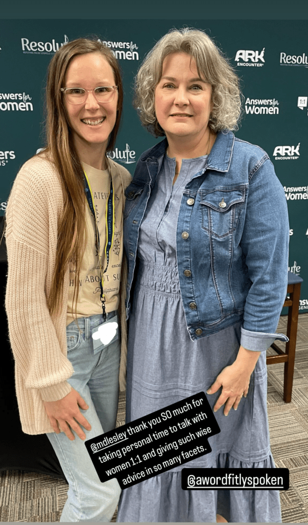 It was such a joy and an honor to speak at Answers in Genesis’ 2025 Answers for Women conference, Resolute: Refuting False Gsopels with Biblical Truth at the Ark Encounter in Williamstown, Kentucky. It was an amazing experience I will never forget. (And I now have my own bio page at the Answers in Genesis website!)