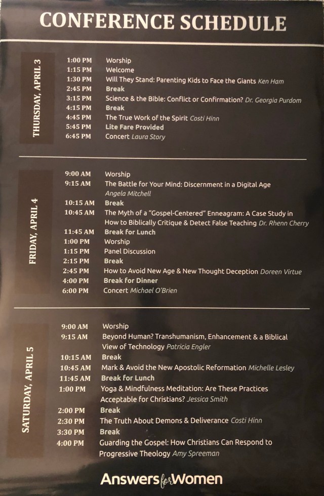 Due to the popularity of this event, there were actually two separate three day conferences back to back: Monday, March 31 – Wednesday, April 2, and Thursday, April 3 – Saturday, April 5. I taught one session at each conference: Mark and Avoid the New Apostolic Reformation. I also had the opportunity to participate in a panel discussion, and be interviewed for the Zero Compromise podcast. And, of course, it was a joy to spend time with my podcast partner and fellow speaker, Amy Spreeman.
