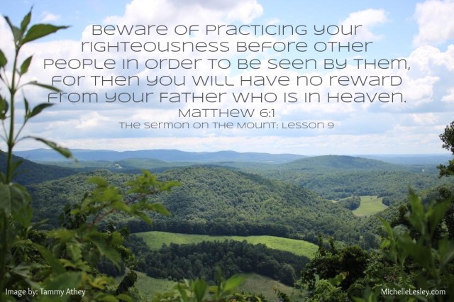 1. Briefly review the “middle parts” (ex: merciful, poor in spirit) of the Beatitudes, the “salt and light” passage, and the “heart of the law” passage in Matthew 5:1-12, 13-16, 14-20. Now read 6:1-18 in light of those passages.