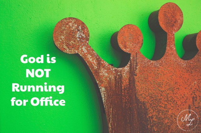 God is who He is. We can take Him or leave Him, but we can’t re-make Him. We were made in His image, not He in ours. He isn’t going to formulate a platform we’ll like so He can earn our vote. He already holds the office of King, and even though He’s frequently opposed, He’s not going to be deposed.